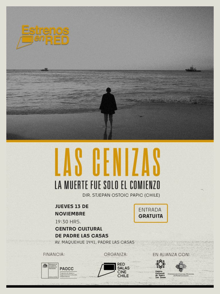 En noviembre continúa el recorrido de Las cenizas en los espacios de exhibición asociados a la Red Salas Independientes de Cine Chile. Esta vez es el turno del Centro Cultural Padre Las Casas, ubicado en la ciudad de la Región de La Araucanía, y Cine UC, ubicado en Santiago Centro, en la Región Metropolitana.