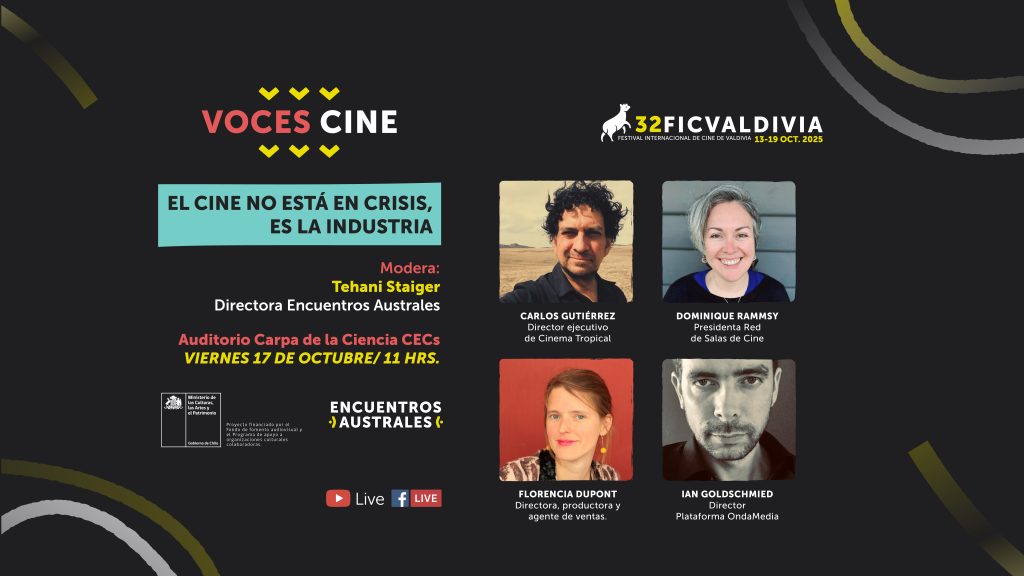 Este año, el Festival Internacional de Cine de Valdivia vuelve con VOCES, un espacio de encuentro y diálogo en torno a la creación y la industria audiovisual, con actividades de acceso gratuito. El programa propone expandir la mirada sobre el cine contemporáneo, abordando nuevos medios, narrativas experimentales y políticas culturales, a través de seis espacios de conversación que tendrán lugar entre el martes 14 y el viernes 17 de octubre en el auditorio de la Carpa de la Ciencia CECs, en Valdivia.